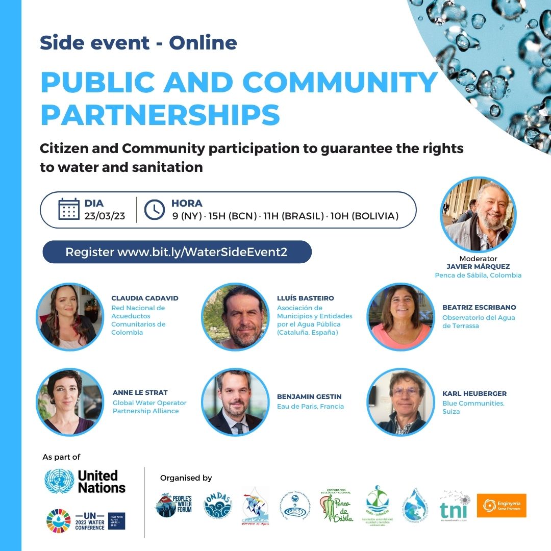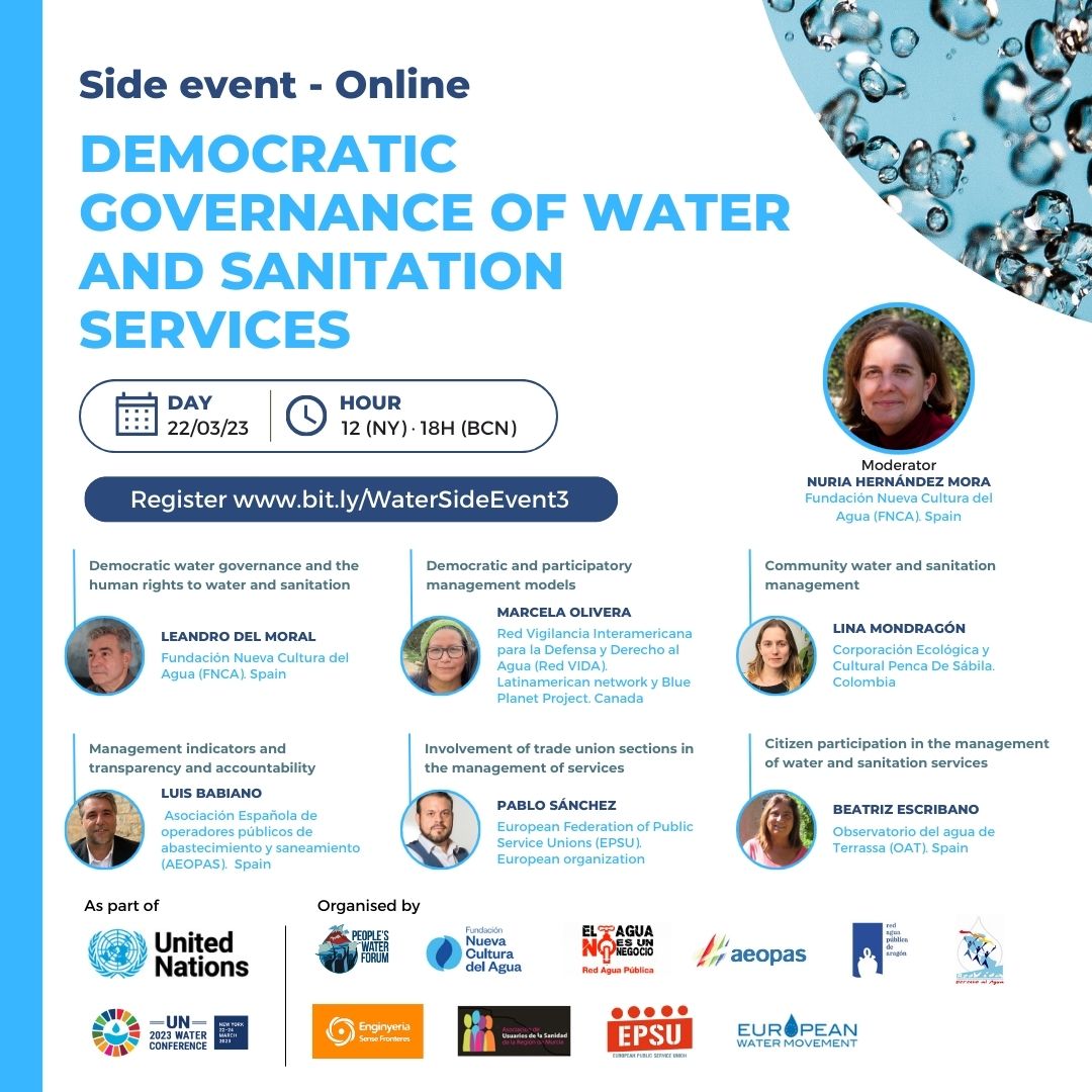 This side event will aim to provide answers to these and other related questions about the privatization of water and sanitation services, in order to provide input for the discussion that will take place at the Water Conference.