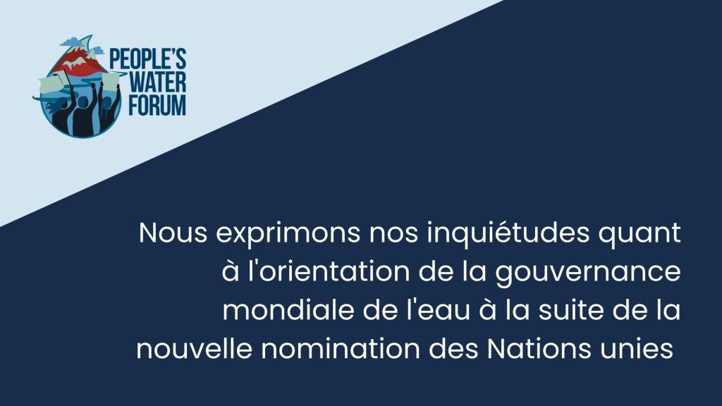 En tant que Forum des peuples de l’eau, nous avons publié une déclaration critique à l’égard de la nomination de l’Envoyée spéciale pour l’eau par le Secrétaire général des Nations unies.